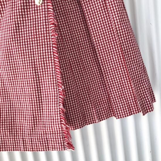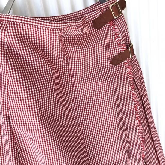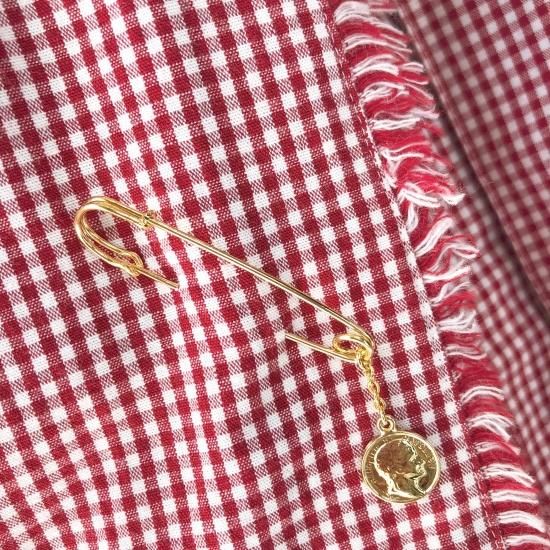 | 春夏におすすめなコットン素材のロングスカート。サイドとバックにはプリーツが施された巻きタイプ。ゴールドのコインチャーム付きピンがアクセントに。 |
