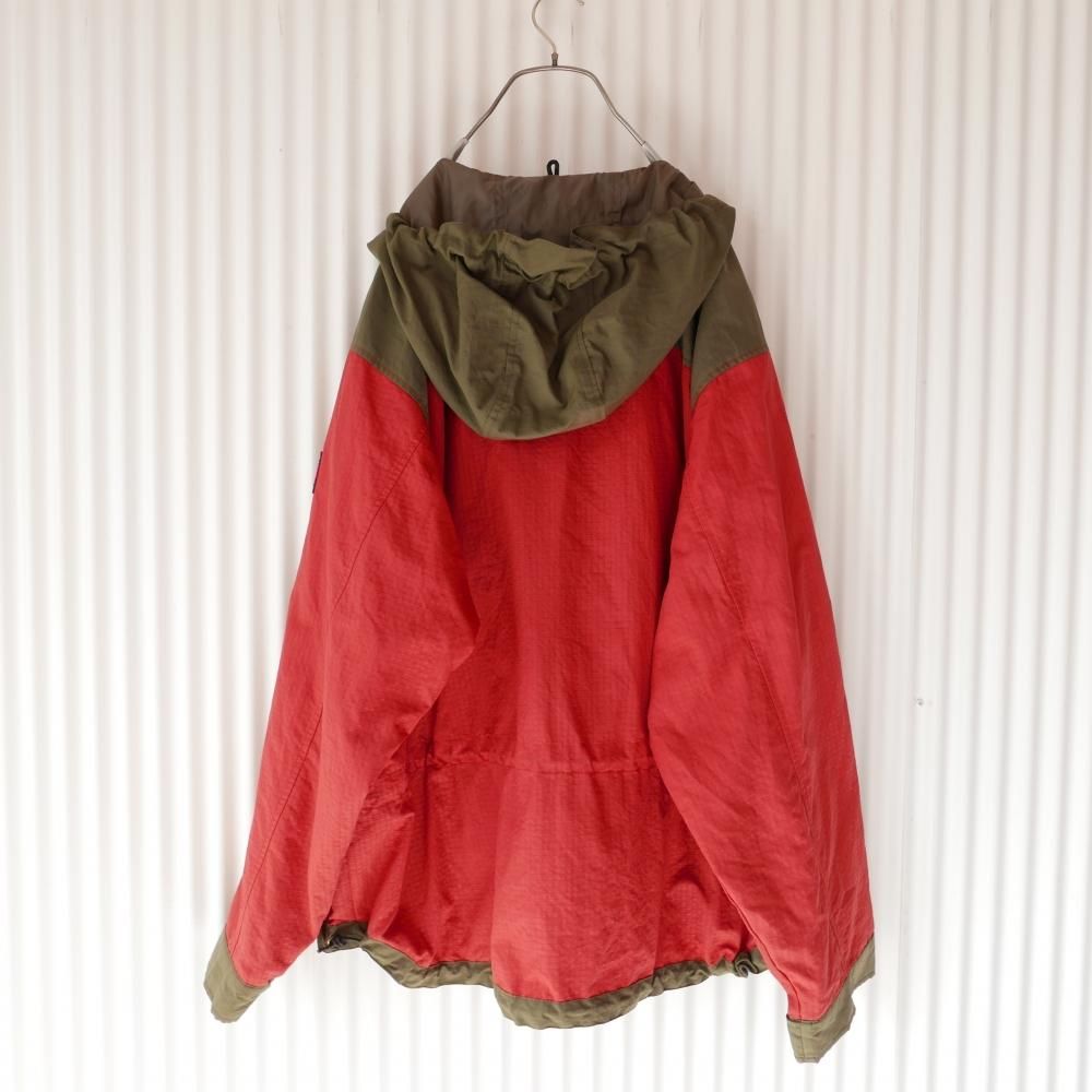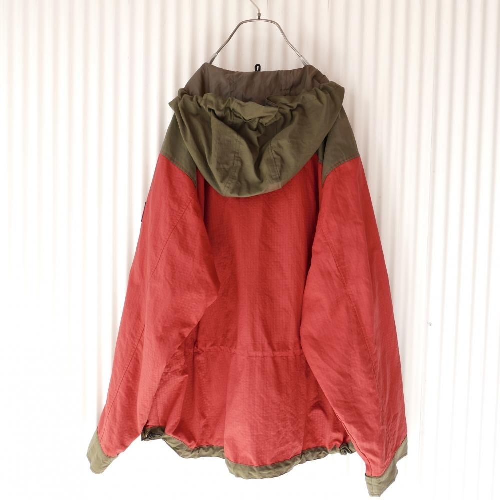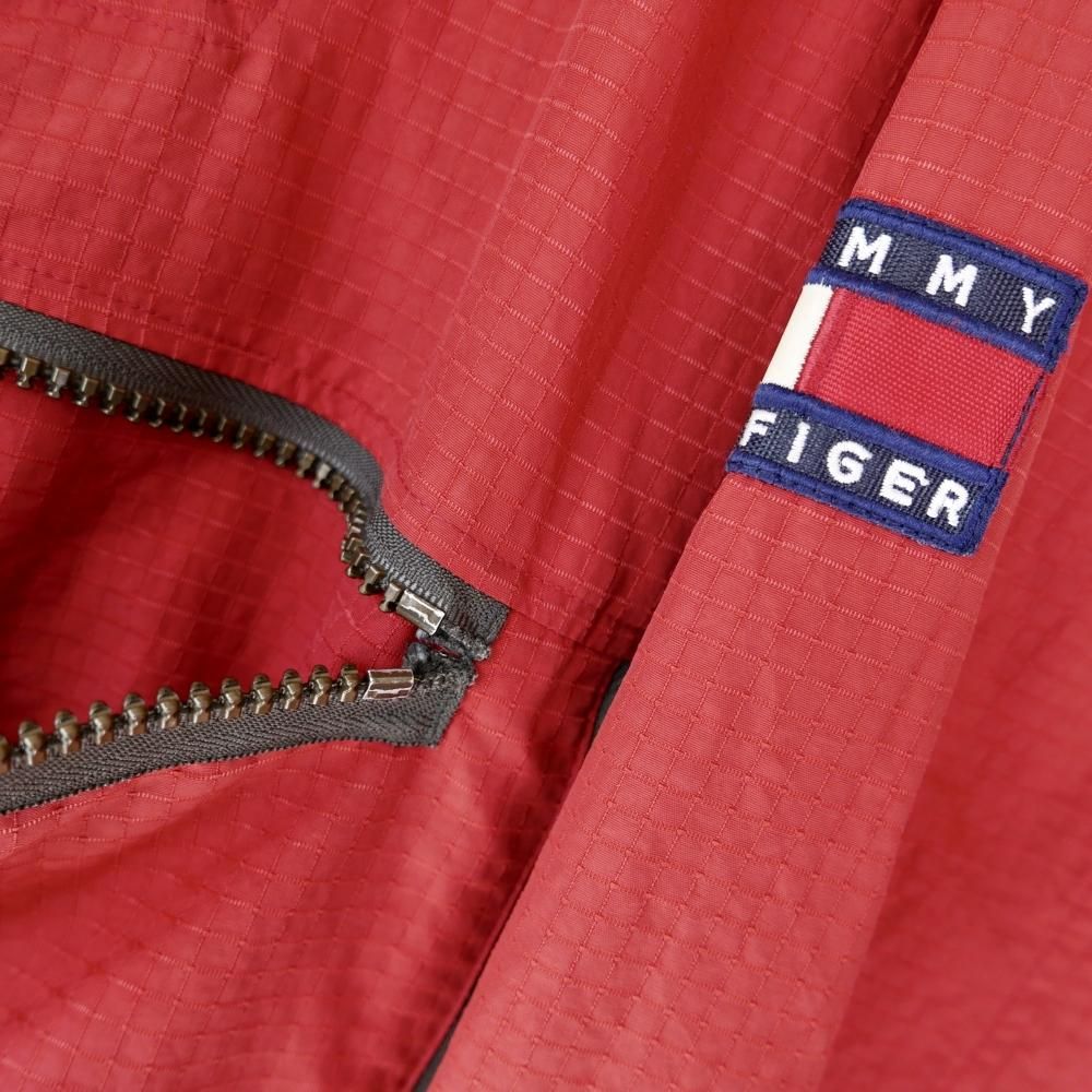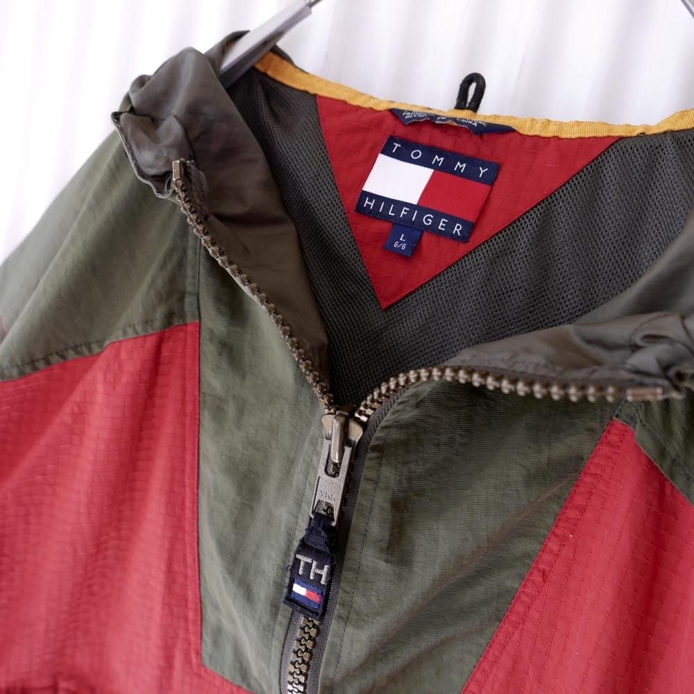 ガバっとBIGなシルエットがTOMMYらしいアノラック。煉瓦色×カーキグリーンの切り替えデザイン。おなかの大きなポケットの3方に付けられたジッパーがゴツめでデザインのアクセントに。肩にはTOMMYロゴワッペン。