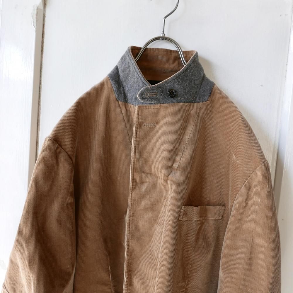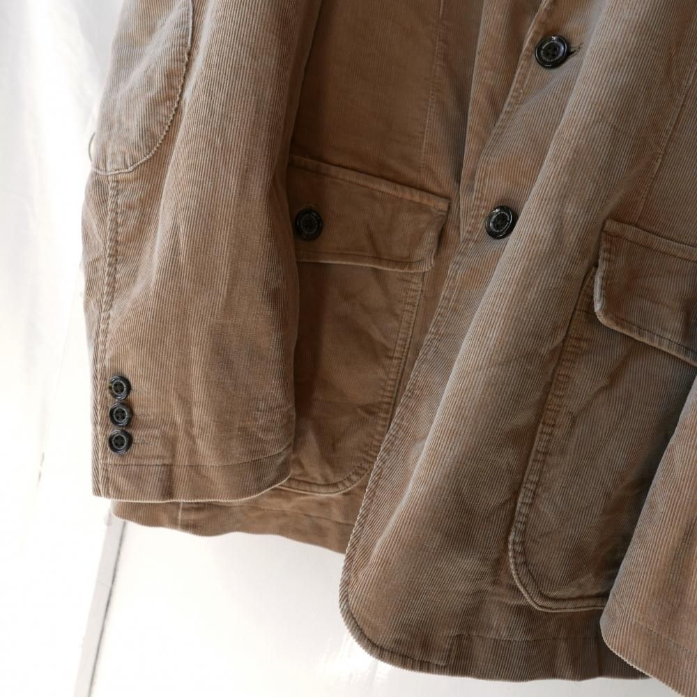 柔らかな細畝コーデュロイ。襟先にはスロートタブが付いたレトロデザイン。BIGサイズですが、肩の張らないカジュアルな生地なのでゆるく肩を落として着て頂けます。オーバーサイズジャケットをゆるっと羽織って、かまいたちの濱家さんのような着こなしに。
