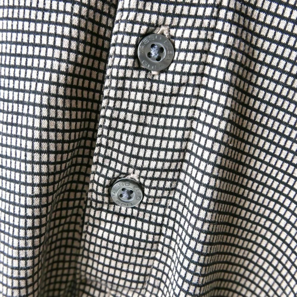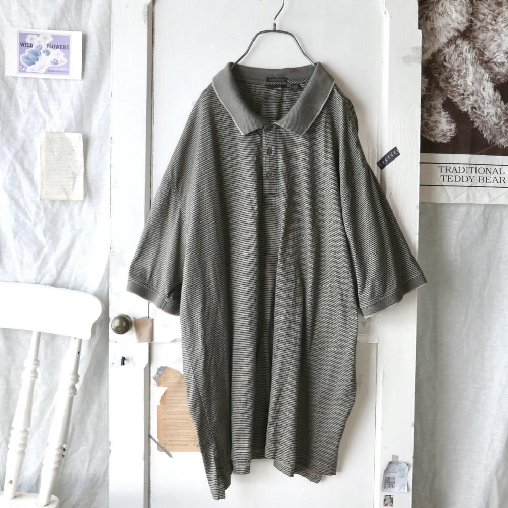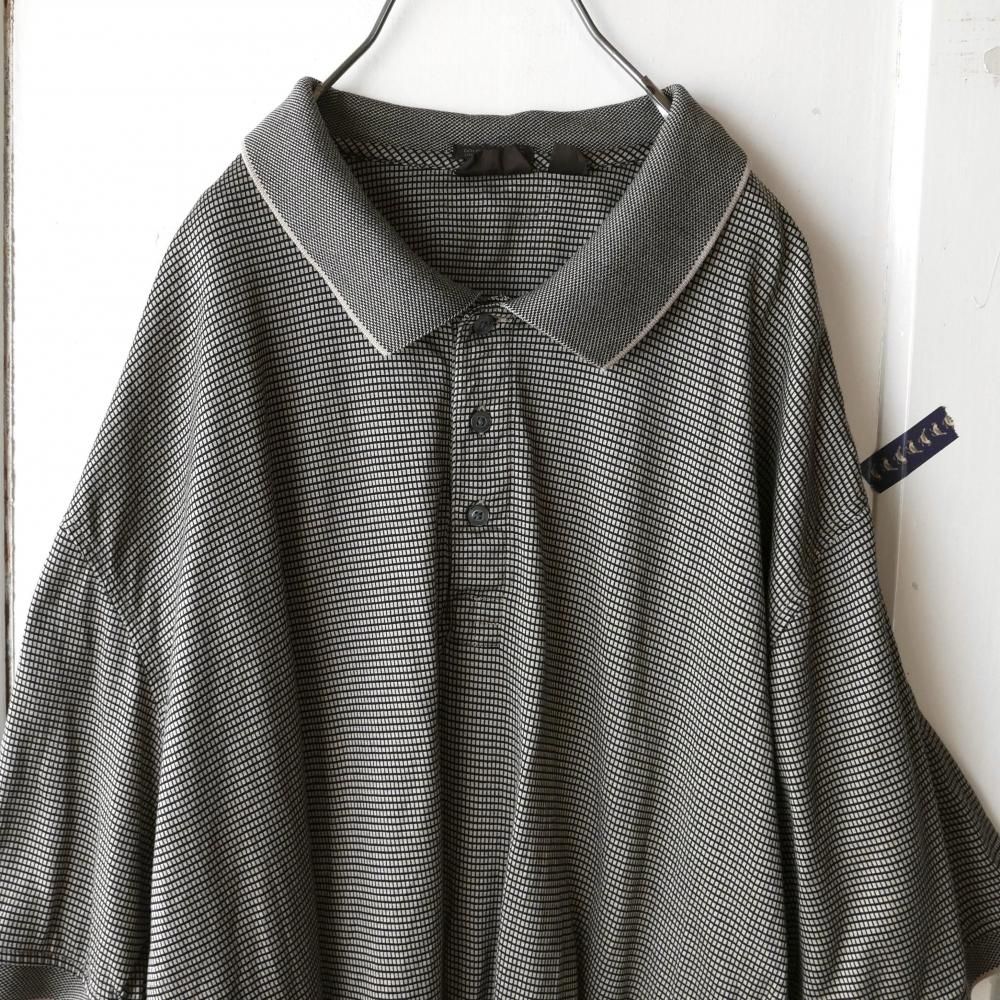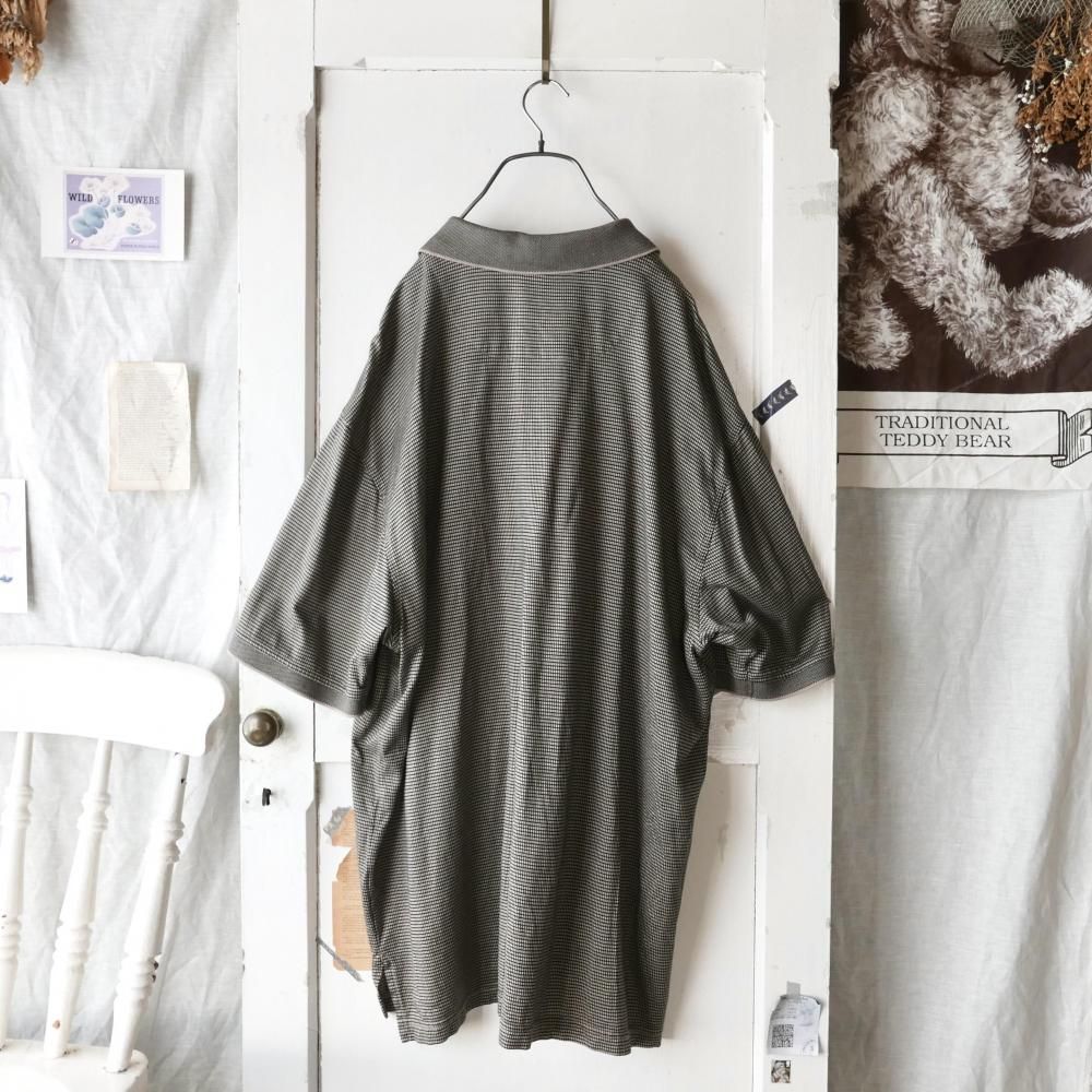 ダボっとBIGサイズの半袖ポロ。ブラウンカラーに黒の方眼チェックのシンプルデザイン。