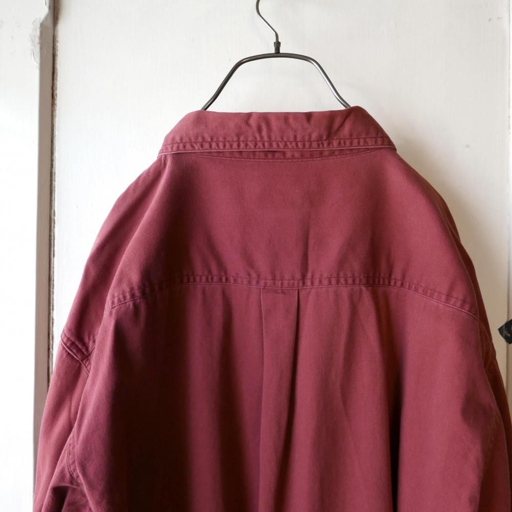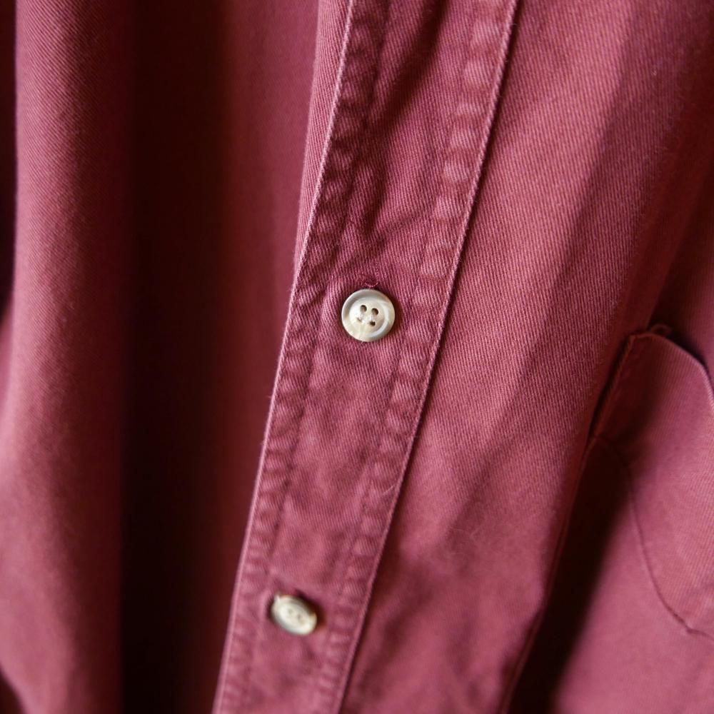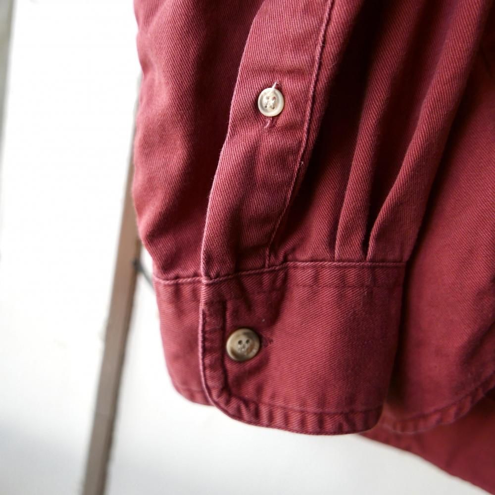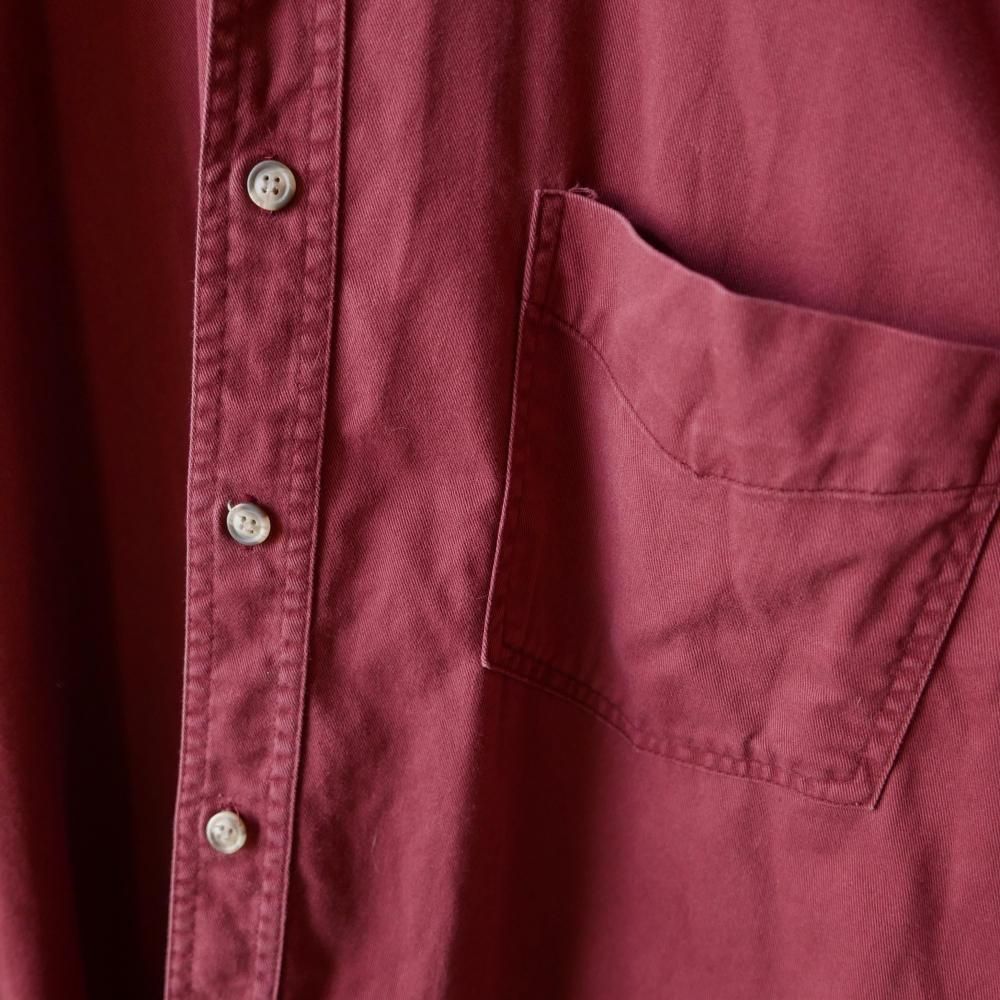 やや褪せてこなれ感の出たくすみレッドカラーのコットンシャツ。メンズサイズ。