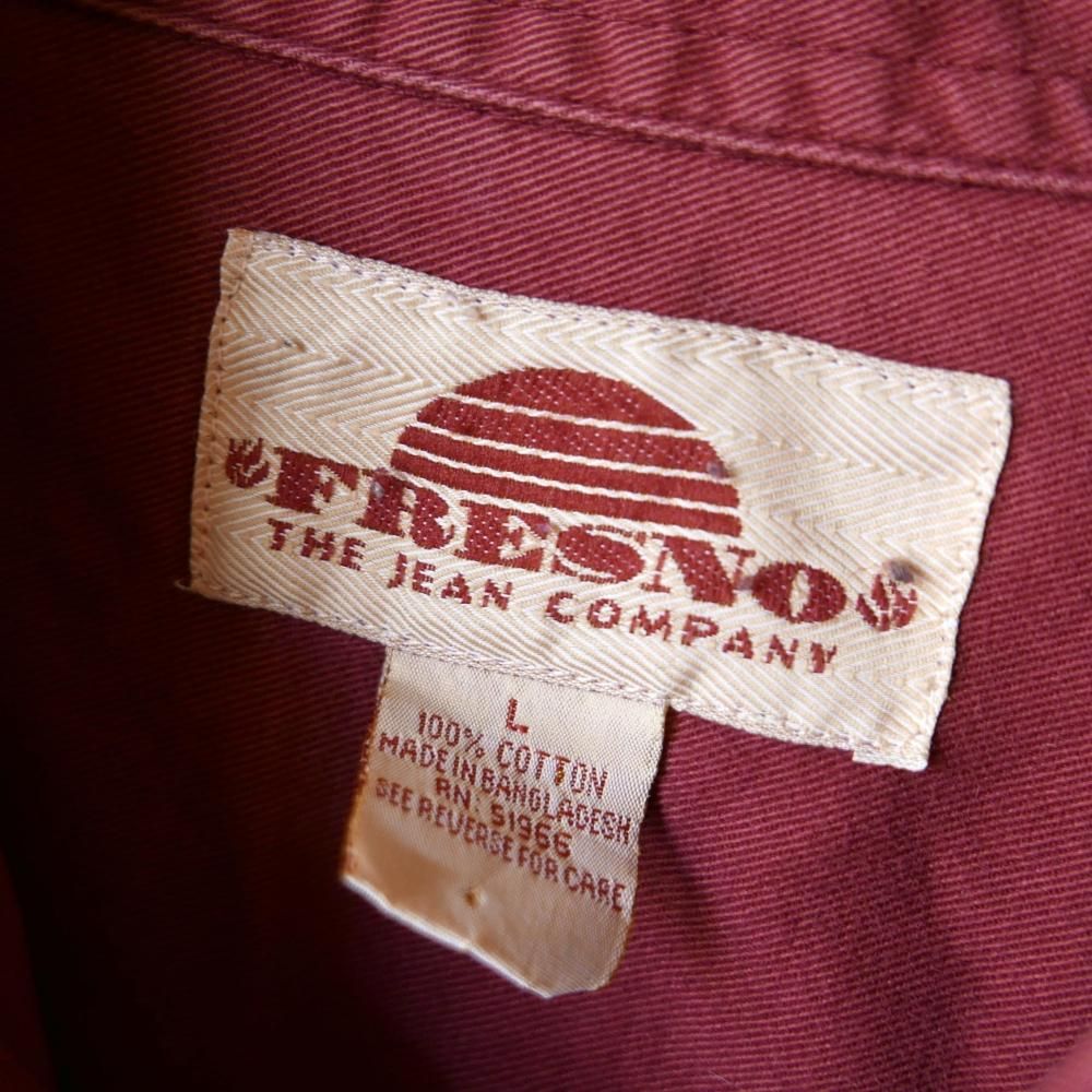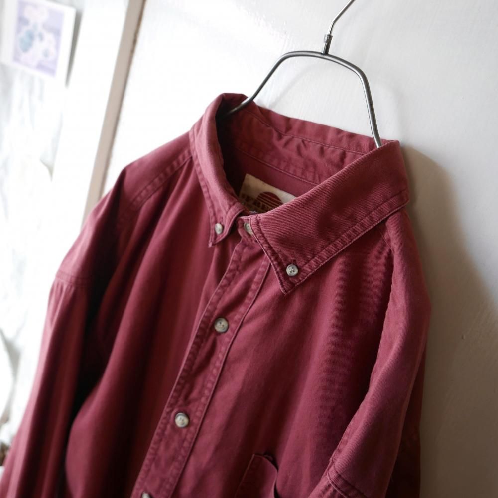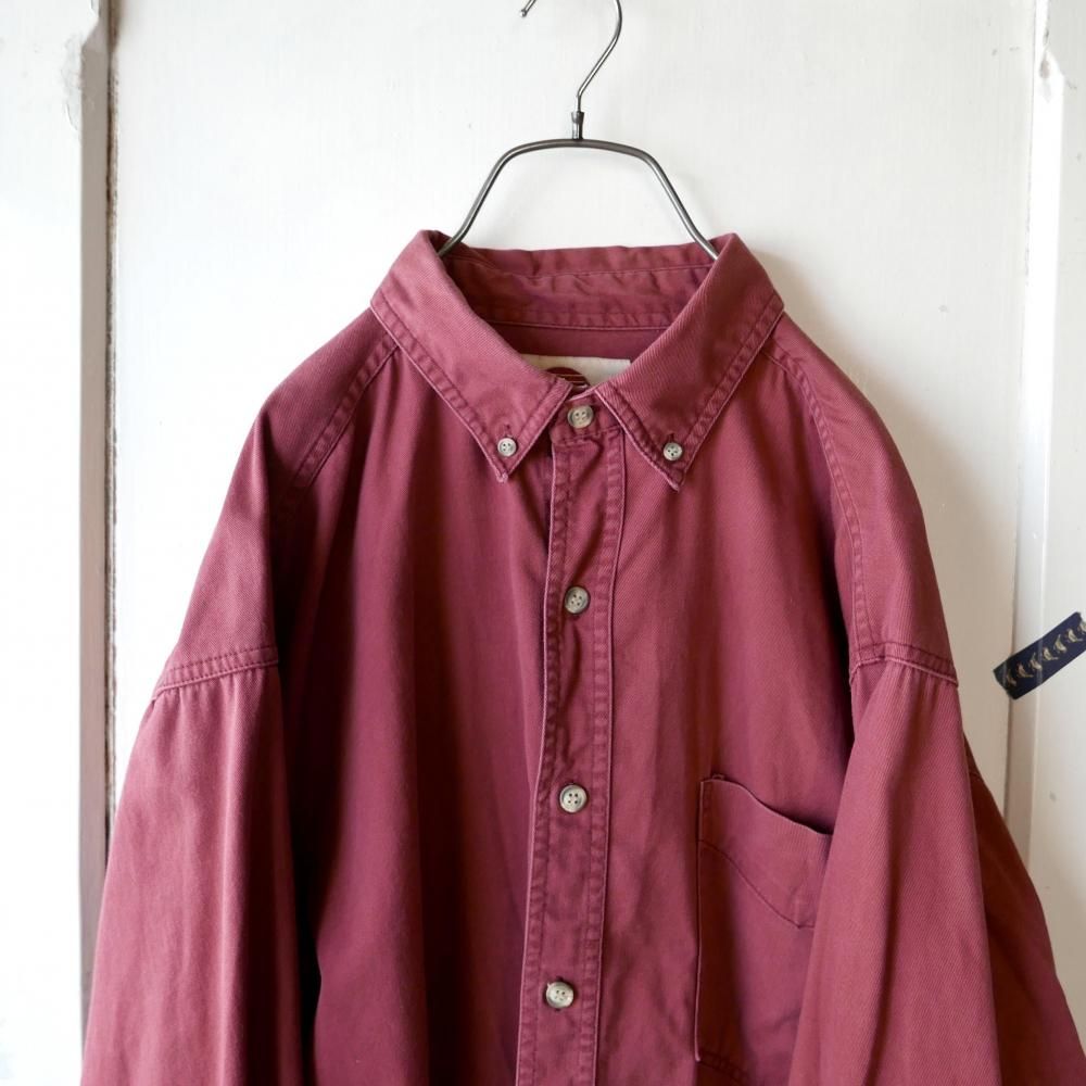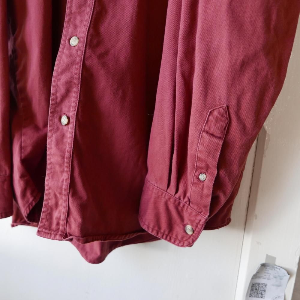 やや褪せてこなれ感の出たくすみレッドカラーのコットンシャツ。メンズサイズ。