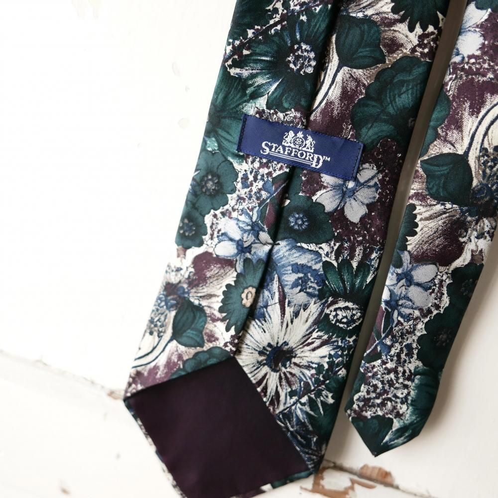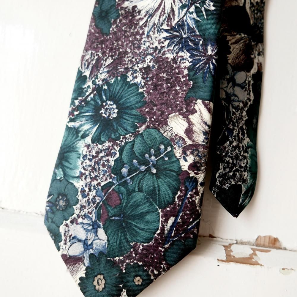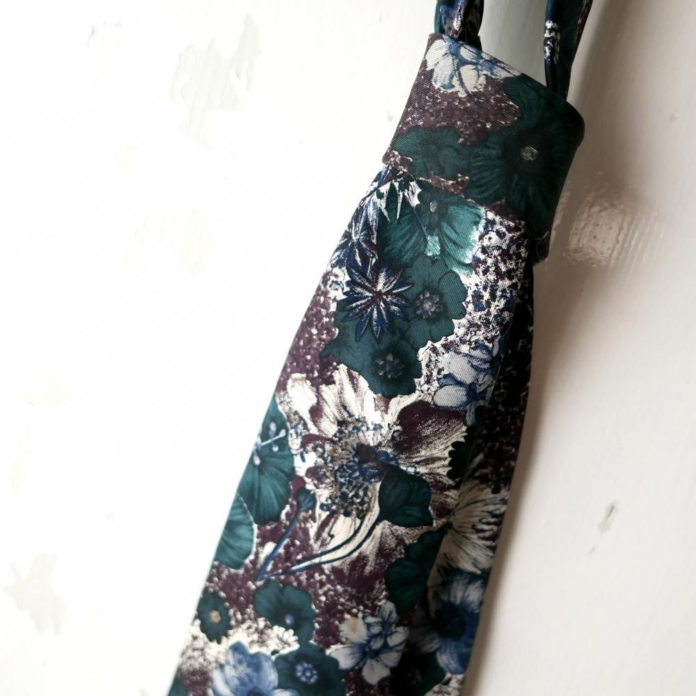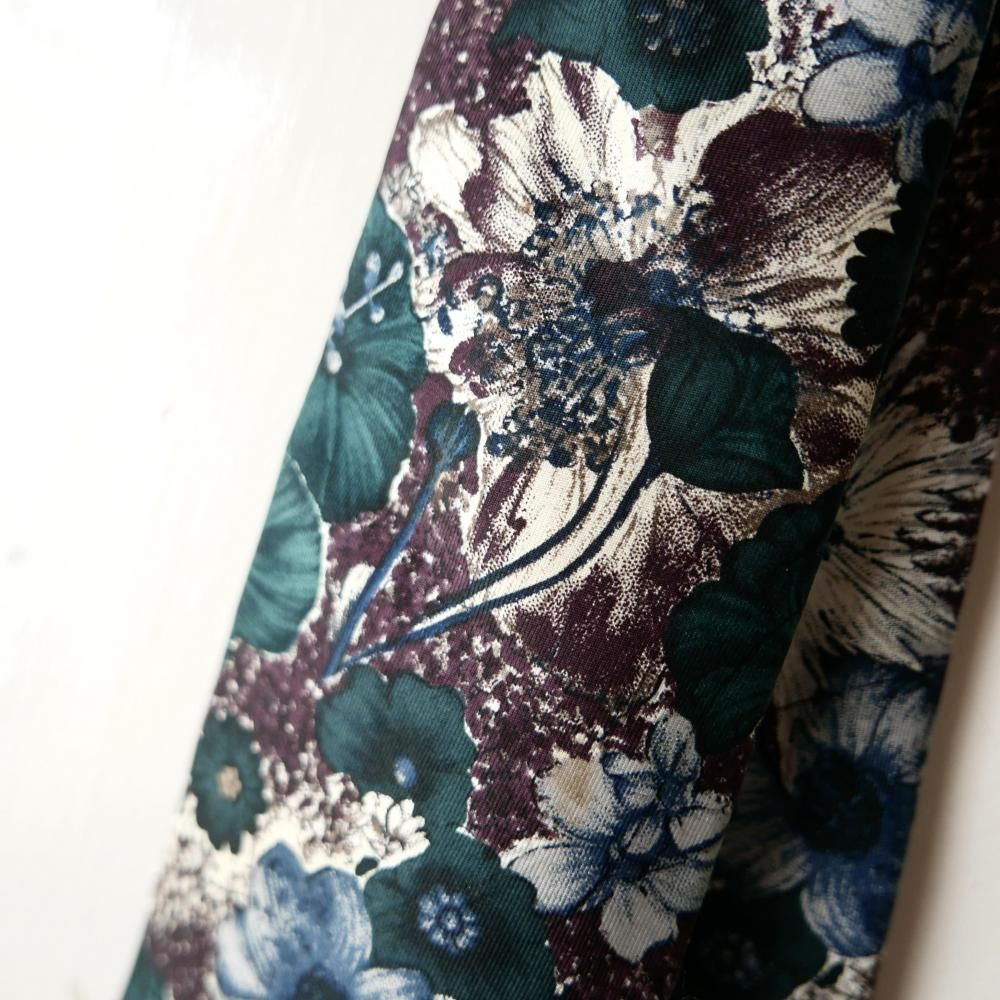 ・ダークトーンのグリーンとブルー、ワインカラーのフラワー柄。